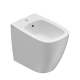 Bidet sanitario a terra filomuro scarico traslato con foro per rubinetteria, in ceramica, colore bianco bianco lucido
