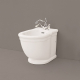 Bidet monoforo a terra filoparete della serie Hermitage di Art Ceram. Il bidet è in ceramica bianco lucido, cm. 55x36xh42, con fissaggio incluso.