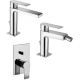 Composizione Tango, miscelatori lavabo, bidet e doccia con deviatore in ottone cromo di Paffoni