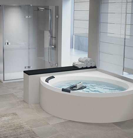 2. Se hai un bagno piccolo puoi scegliere invece una vasca angolare, perfetta per ottimizzare al massimo lo spazio pur donando un look moderno.