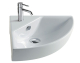 Lavandino ad installazione sospesa angolare in ceramica, colore bianco lucido