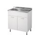 Set mobile e lavello ad un vasca a sinistra in acciaio inox con sgocciolatoio a destra, colore bianco