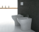 Set sanitari wc e bidet filomuro alti in ceramica con coprivaso avvolgente standard, colore bianco lucido.