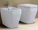 Vaso e bidet a terra filomuro monoblocco Tulip One di Azzurra Ceramica, con scarico a parete convertibile a pavimento tramite curva tecnica, in ceramica, bianco lucido. Fissaggi inclusi. Design semplice, essenziale ed elegante. DISPONIBILE SOLO SU ORDINAZIONE COLORATI.