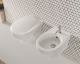 - il copriwater originale bianco lucido; la tavoletta wc è nella versione in duroplast avvolgente con chiusura a discesa rallentata, e con sgancio rapido per facilitare la pulizia