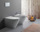 Set sanitari wc e bidet filomuro in ceramica con coprivaso in duroplast frizionato, colore bianco lucido