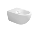 Wc/bidet sanitario con erogatore installazione sospesa senza brida (rimless) in ceramica, colore bianco lucido