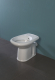 Vaso/bidet a terra scarico parete della serie Confort di Alice Ceramica. Il wc con funzione bidet incorporata è in ceramica bianco lucido, cm. 52x36,5xh40. Il vaso/bidet è più alto rispetto allo standard e questo facilita notevolmente la seduta ed il rialzo.